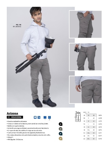 • Pantalón multibolsillos de hombre. 32 M 42 42/115 • Pantalón multibolsillos de mujer. 28 S 38 38/104