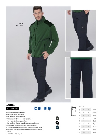 • Pantalón multibolsillos de hombre. 30 S 40 38/109 • Pantalón multibolsillos de mujer. 28 S 38 36/104