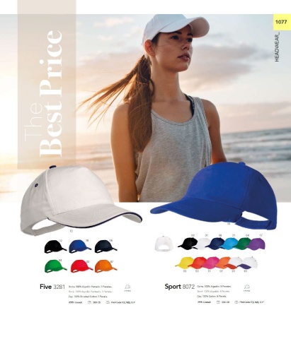 Fi v e 3 2 8 1 G orr a. 1 0 0 % Al g o d ó n P ei n a d o. 5 P a n el e s. S p ort 8 0 7 2 G orr a. 1 0 0 % Al g o d ó n. 5 P a n el e s.