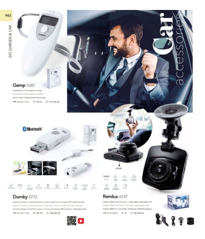 R e c e pt or Bl u et o ot h. C o n exi ó n Bl u et o ot h. C o n exi ó n J a c k 3, 5 m m. C o n exi ó n U S B. C a bl e Ext e n si bl e. C á m ar a. 1 0 8 0 P. P a nt all a L C D 2, 4”. M ultil e n g u aj e. R e c ar g a bl e U S B.